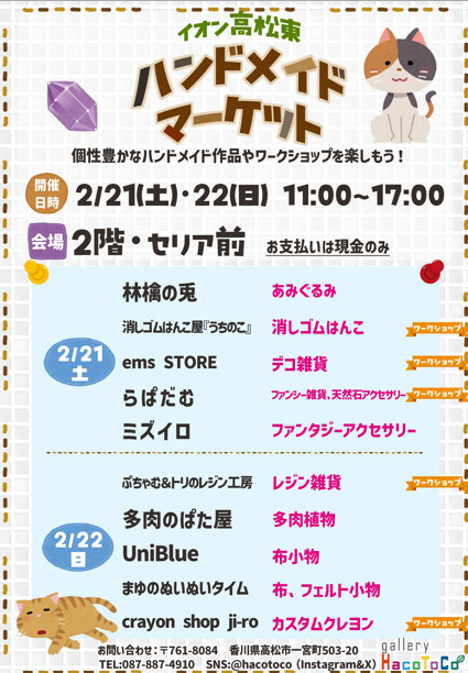 イオン高松東ハンドメイドマーケット開催のお知らせ