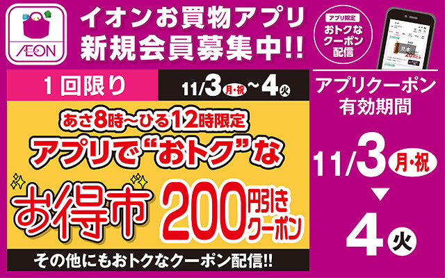 1回のお会計が4,000円(税込)以上で使える200円引きクーポン配信!