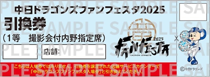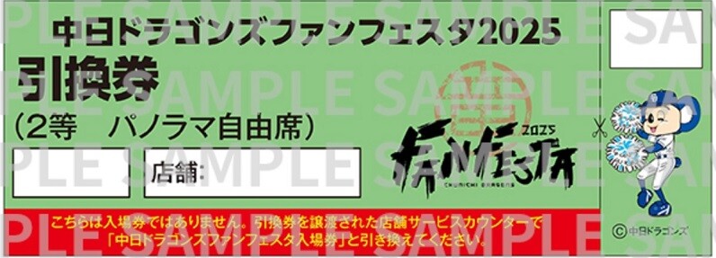 ・2等:中日ドラゴンズファンフェスタ2025パノラマ自由席ペアチケット引換券(各店100組)