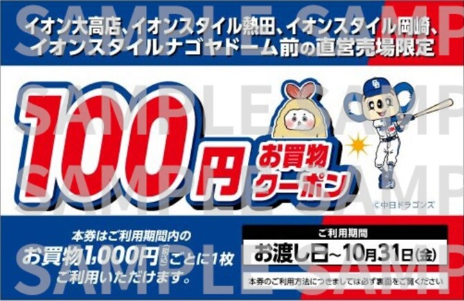 イオンスタイル熱田・イオンスタイルナゴヤドーム前・イオン大高店・イオンスタイル岡崎では、「中日ドラゴンズ応援感謝セール特別企画」として、豪華景品が当たる抽選会を開催いたします。
