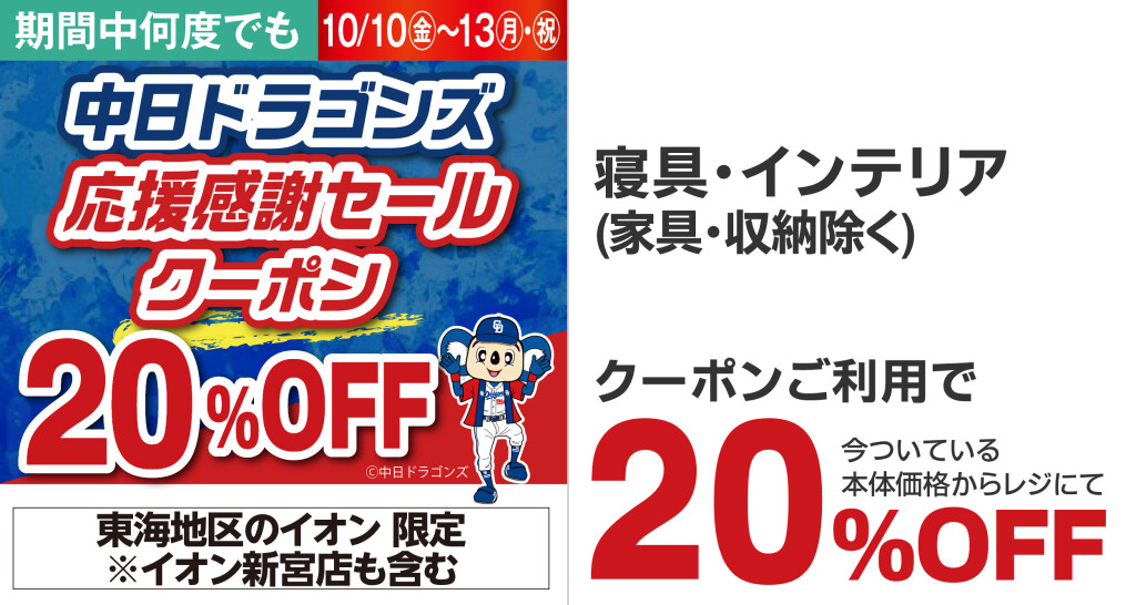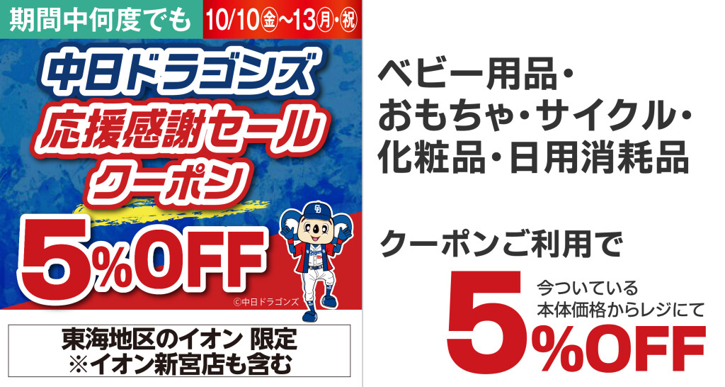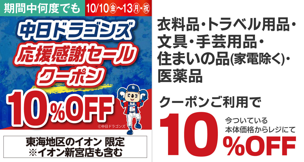 \10/10㊎~10/13㊊㊗中日ドラゴンズ応援感謝クーポン配信!/