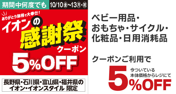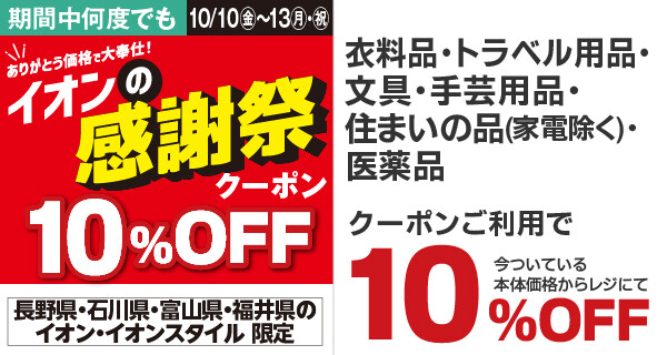 \10/10㊎~10/13㊊㊗イオンの感謝祭クーポン配信!/