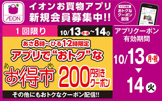 期間中イオンお買物アプリにてクーポンが配信されます!