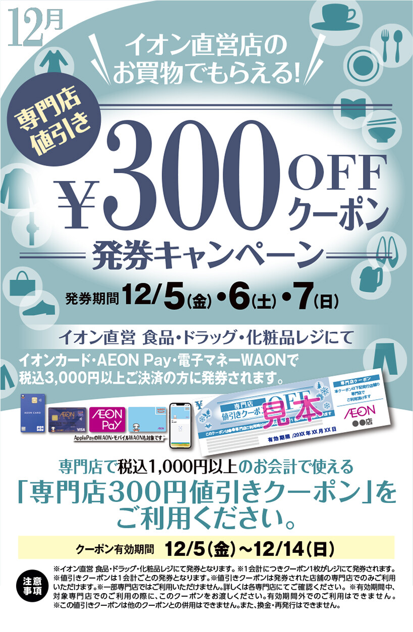 専門店:300円値引きクーポン発券キャンペーン♪ (25年12月)