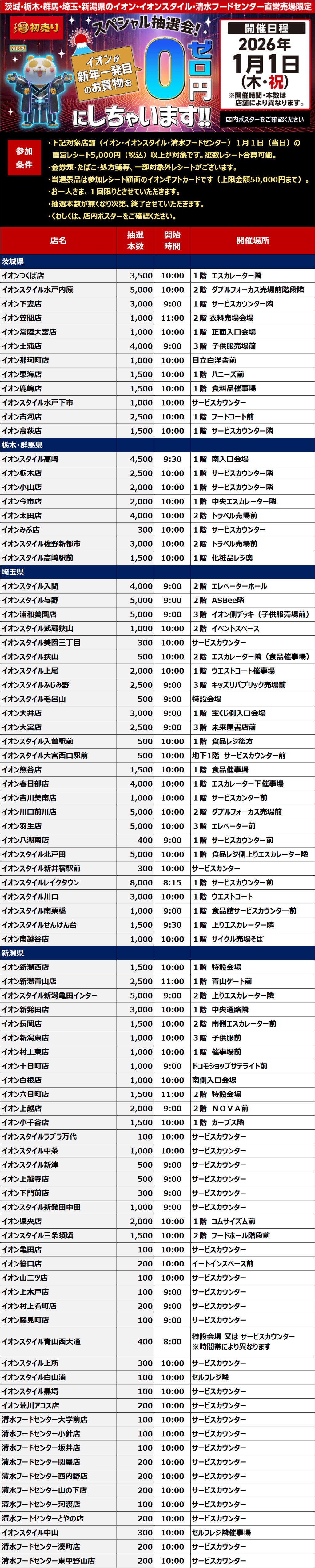 【埼玉県・茨城県・栃木県・群馬県・新潟県】0円にしちゃいます抽選会!