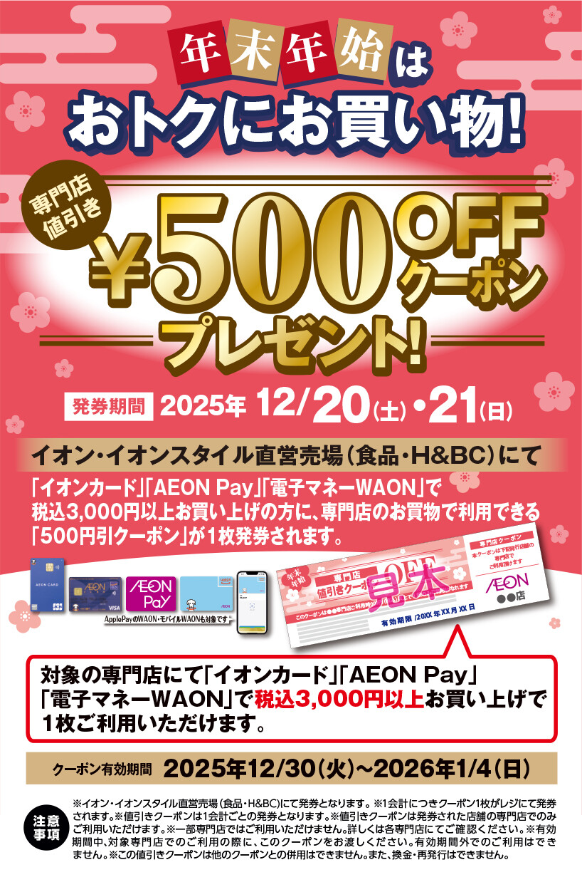 年末年始はおトクにお買い物!専門店値引きクーポンプレゼント