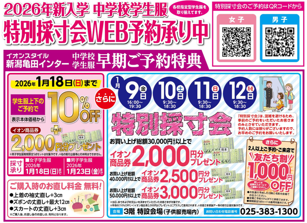 イオンスタイル新潟亀田インター中学校制服採寸会
