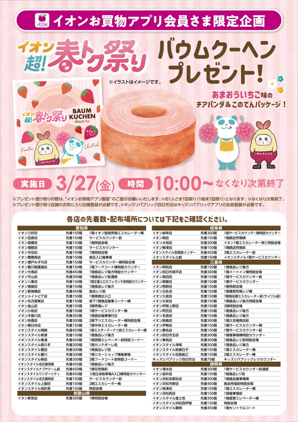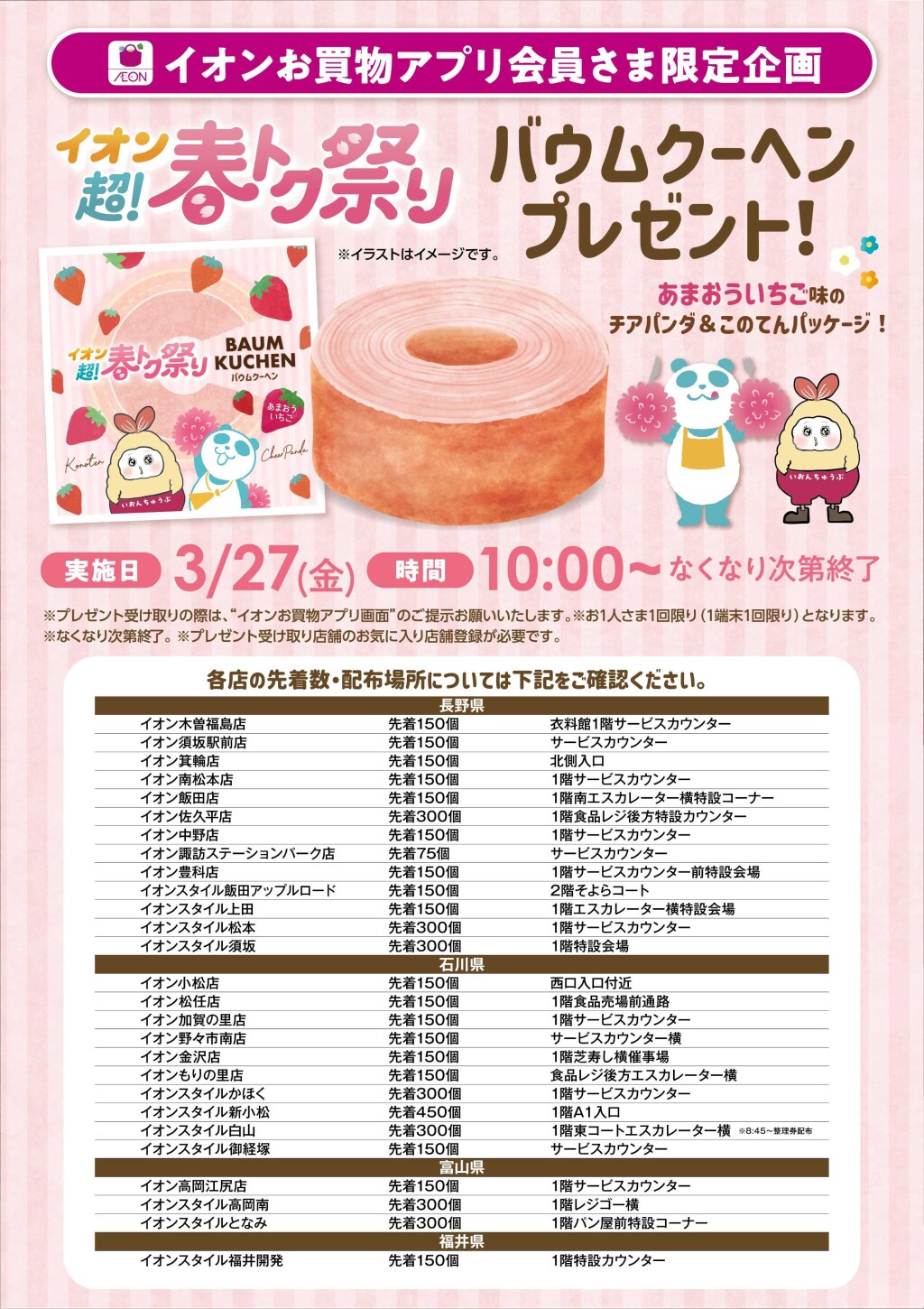 3/27㊎バウムクーヘン(あまおういちご味) 先着プレゼント!