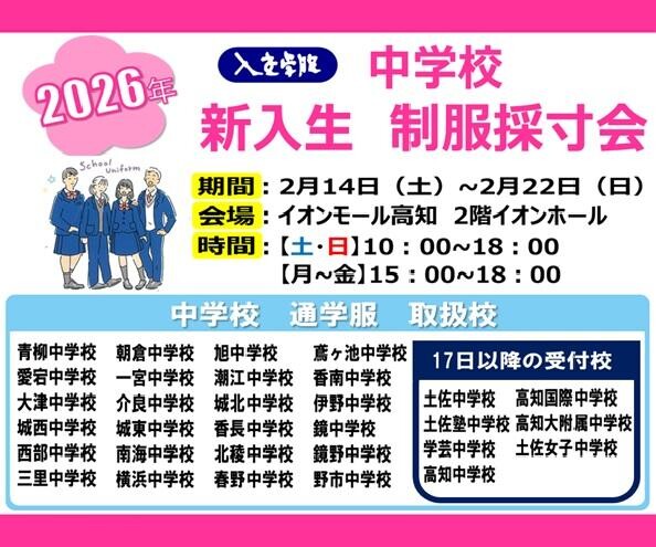 2026年春にご入学されるお子さま向けに、イオンモール高知2階イオンホール特設会場にて