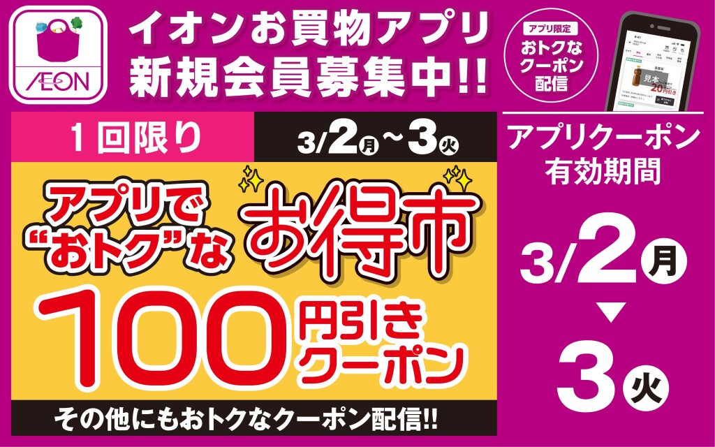 1回のお会計が500円(税込)以上で使える100円引きクーポン配信!