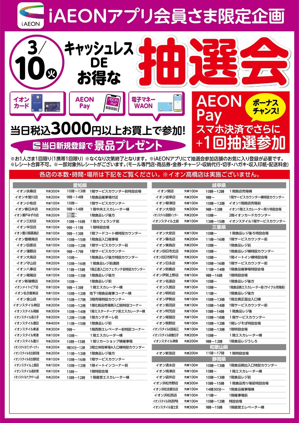 ※イオン高橋店は実施ございません