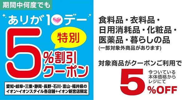 ありが10デー 特別5%割引クーポン配信!