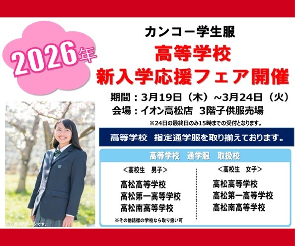 【高松店】カンコー学生服 2026年高等学校新入学応援フェア開催!