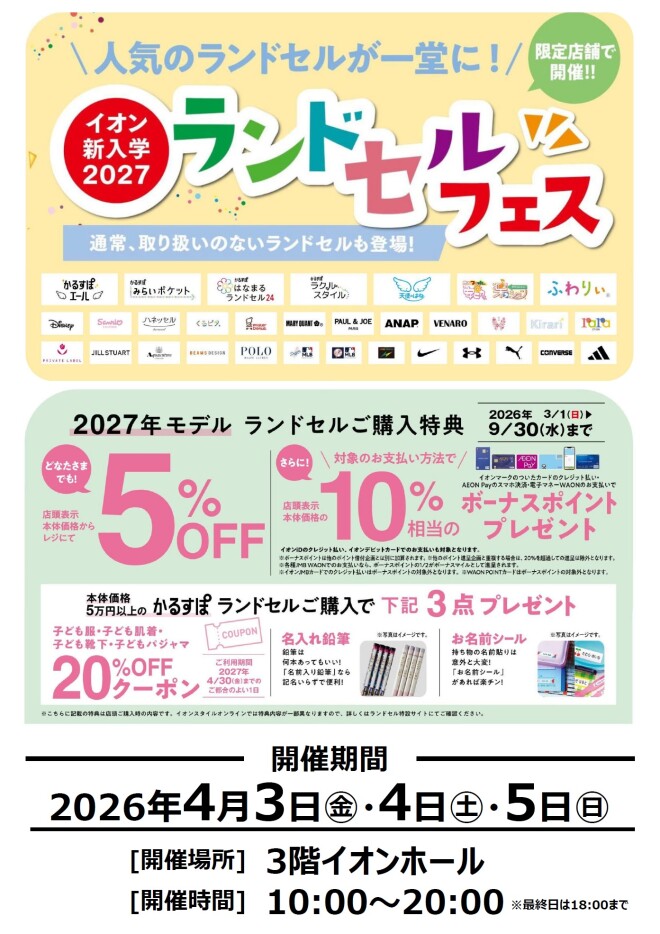 イオン新入学2027『ランドセルフェス』を開催いたします。